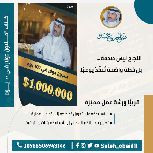 برنامج مليون دولار في 100 يوم يُعد برنامج مليون دولار في 100 يوم تجربة تدريبية حضورية مكثفة في مجال تطوير...
